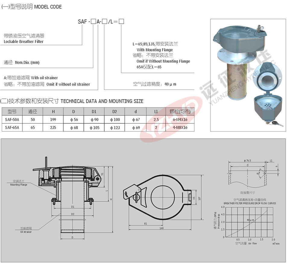 SAF系列帶鎖液壓空氣濾清器帶鎖,保證了客戶的安全使用,加油濾網(wǎng)可以有效的濾除加油過程中的大顆粒污染物,安裝方便等優(yōu)點。